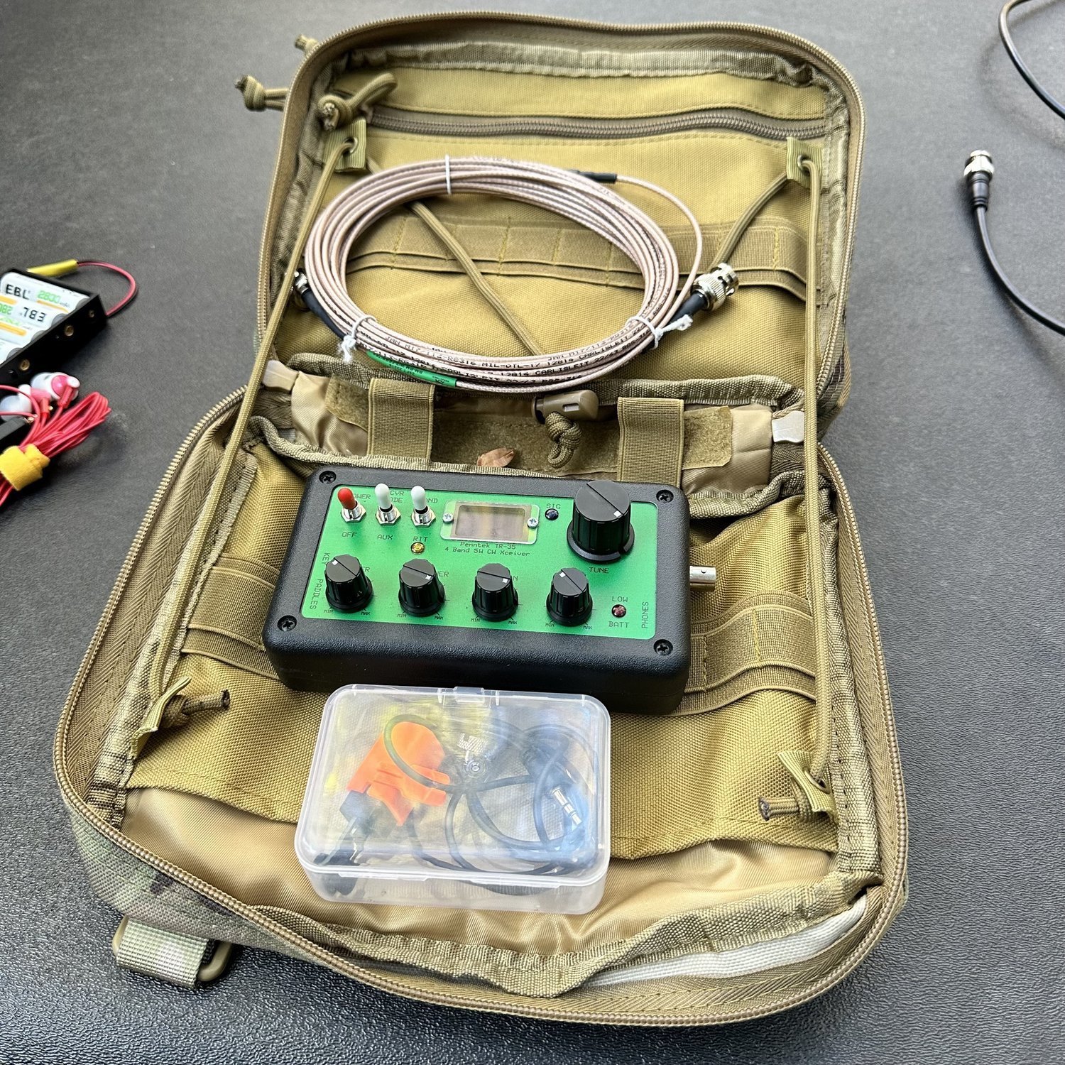 For instance, if I am flying, I will normally take a very small radio like the Penntek TR-35 and an EFHW antenna as this whole rig will fit into a medium sized “admin” pouch. Complete with power source (a AA battery pack) it only weighs a few pounds and I know it will not get lost as it is on my person while traveling.