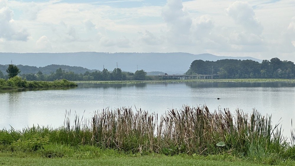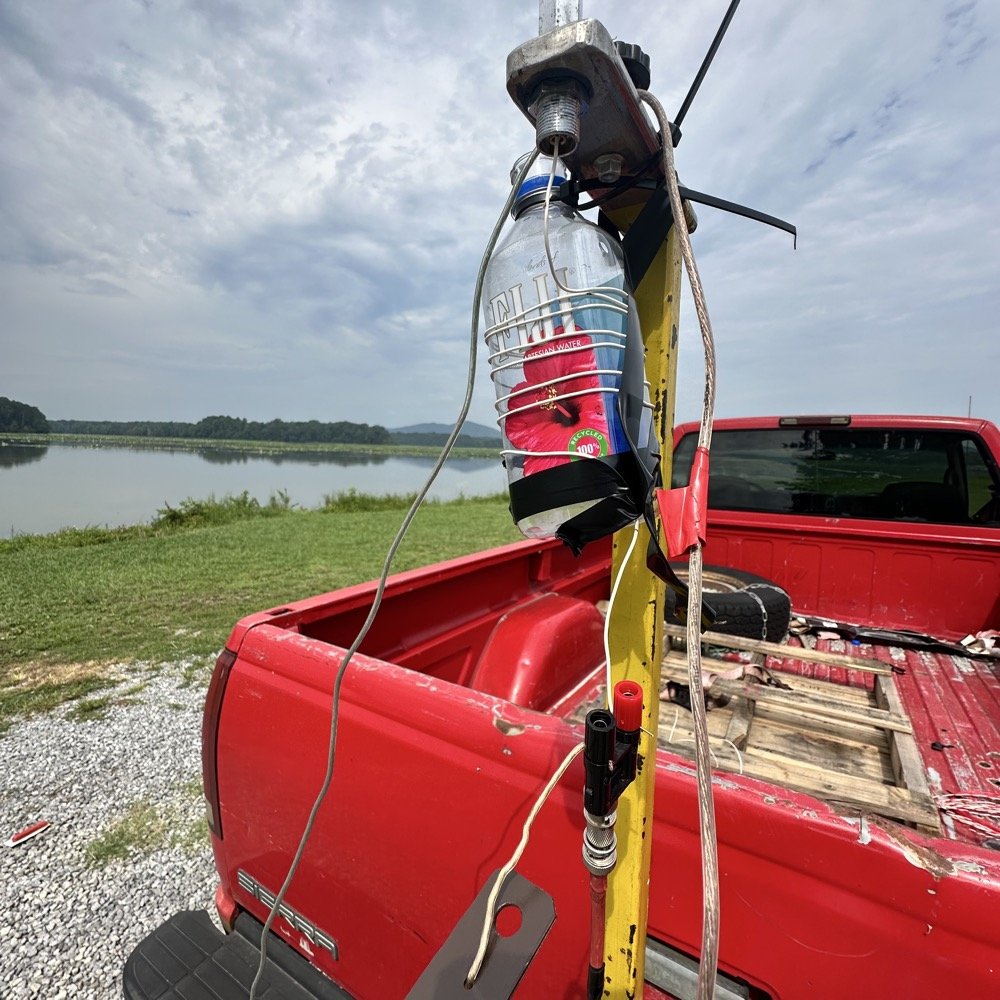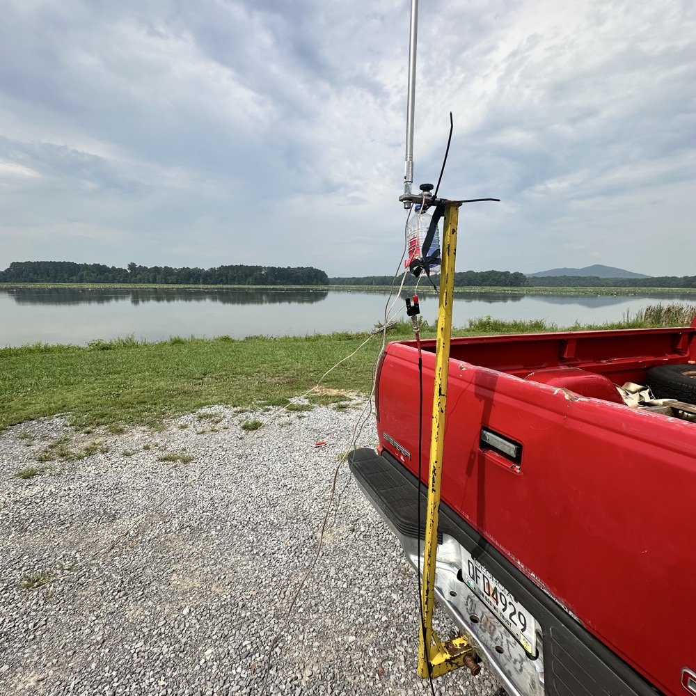 Today I went to Stevenson Alabama and their city park sits within the Crow Creek Nature Refuge which happens to be a POTA park. It is US-9880 and is an easy drive to the water’s edge from the main road. I picked a spot and started setting up the system. I ran the TenTec Scout 555 again today and also used the Wolf River Coils 213” whip antenna along with the receiver mount I built and a bunch of ground radials as you can see in the photo above. The great thing about the whip is that it is telescoping so to tune it, you simply extend or collapse sections till the null on the nanoVNA is close to where you want to operate and then tinker with the radials to get the SWR to a reasonable level. I seem to be getting about 63 ohms of impedance at the base of the antenna like this so it works well with my Wireman coax to connect the radio. This whip is just long enough to get me to the 20 meter band when tuned like you see above and that gains me access to all the others up to 10 meters because of it. (Well 6 would work too but I don’t have a radio to get on 6 meters so I don’t include it).