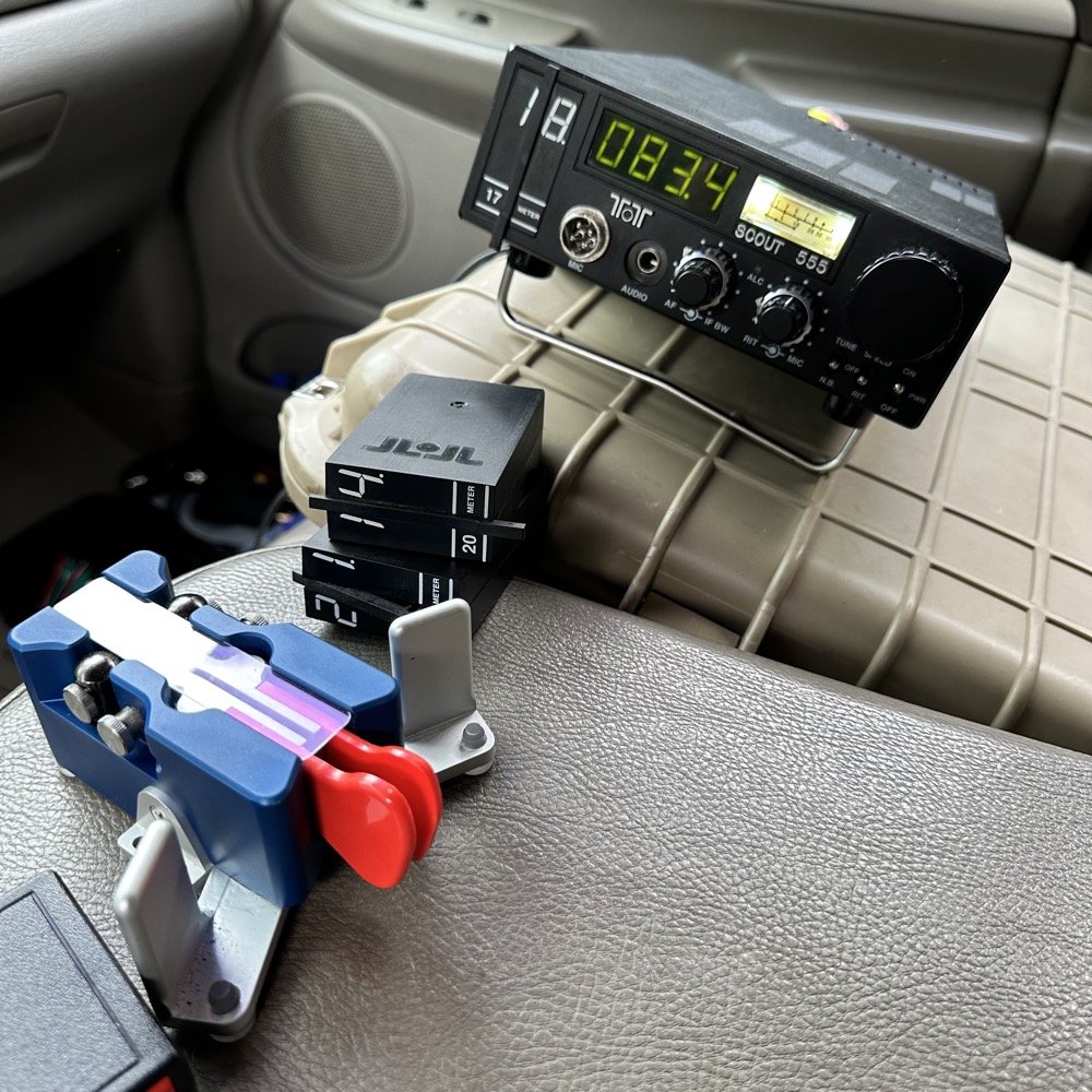 Once the Scout was setup in the seat next to me (another reason to operate alone, you can put stuff literally anywhere you want around you without having to consult with another person at all. I positioned the Begali Traveler and the Picokeyer next to my computer and got started on 20 meters.
