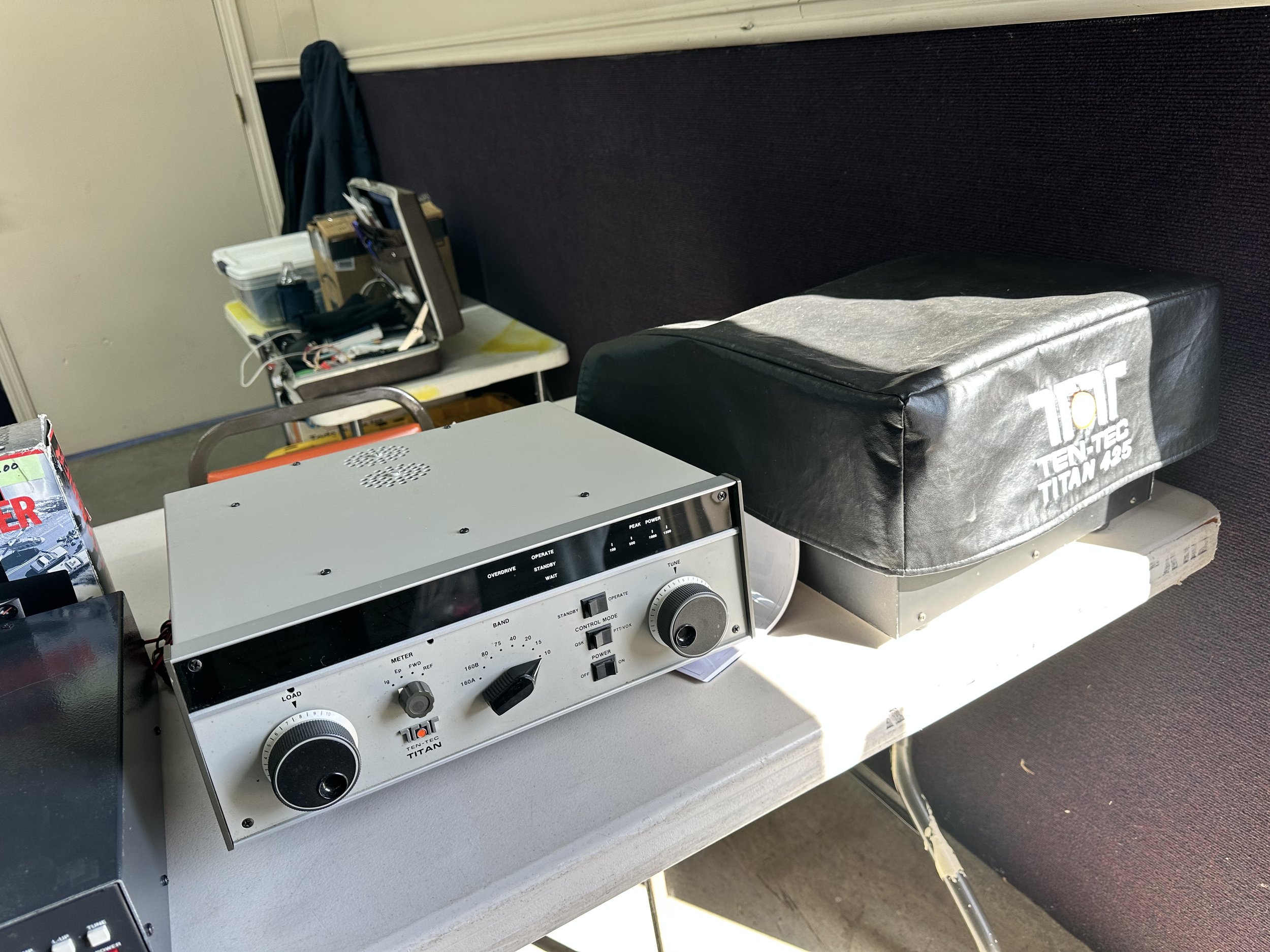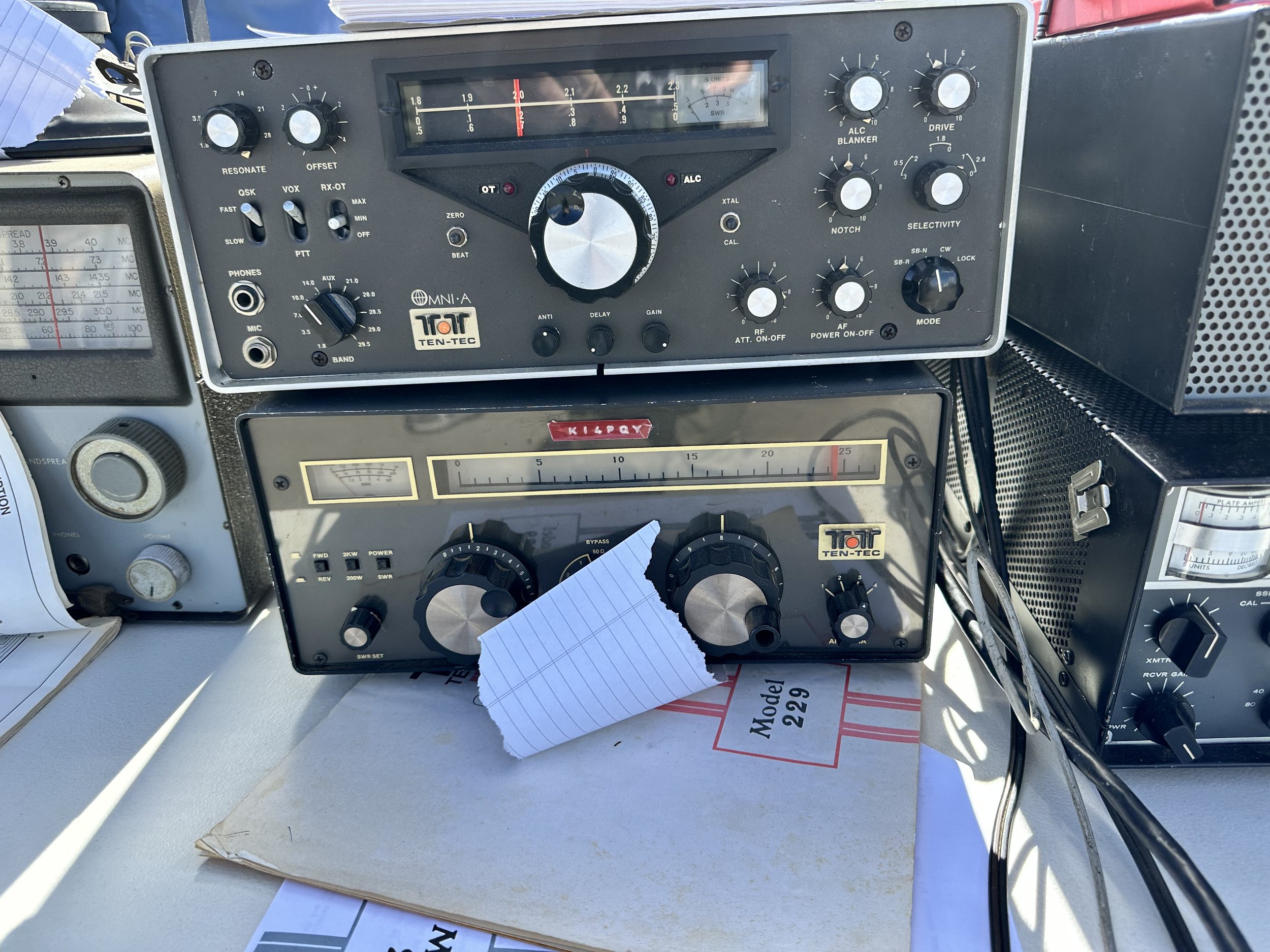 Look at all that Ten Tec goodness on this truck! A Paragon as well as an Omni 6 and on top of that, the automatic antenna tuner (they called it an antenna coupler) as well as the matching speaker power supply. This is what I strived to own for years and it took me a while to assembly my station from different places but I now have the Omni 6+, Automatic Antenna Coupler and Speaker Power Supply station. Hence the need for the Hercules… but I digress… Anyway, what a day of scavenger hunting Ten Tec radios at a local hamfest! Did you notice something else in the photos that caught your eye if you are not into these old radios like I am?