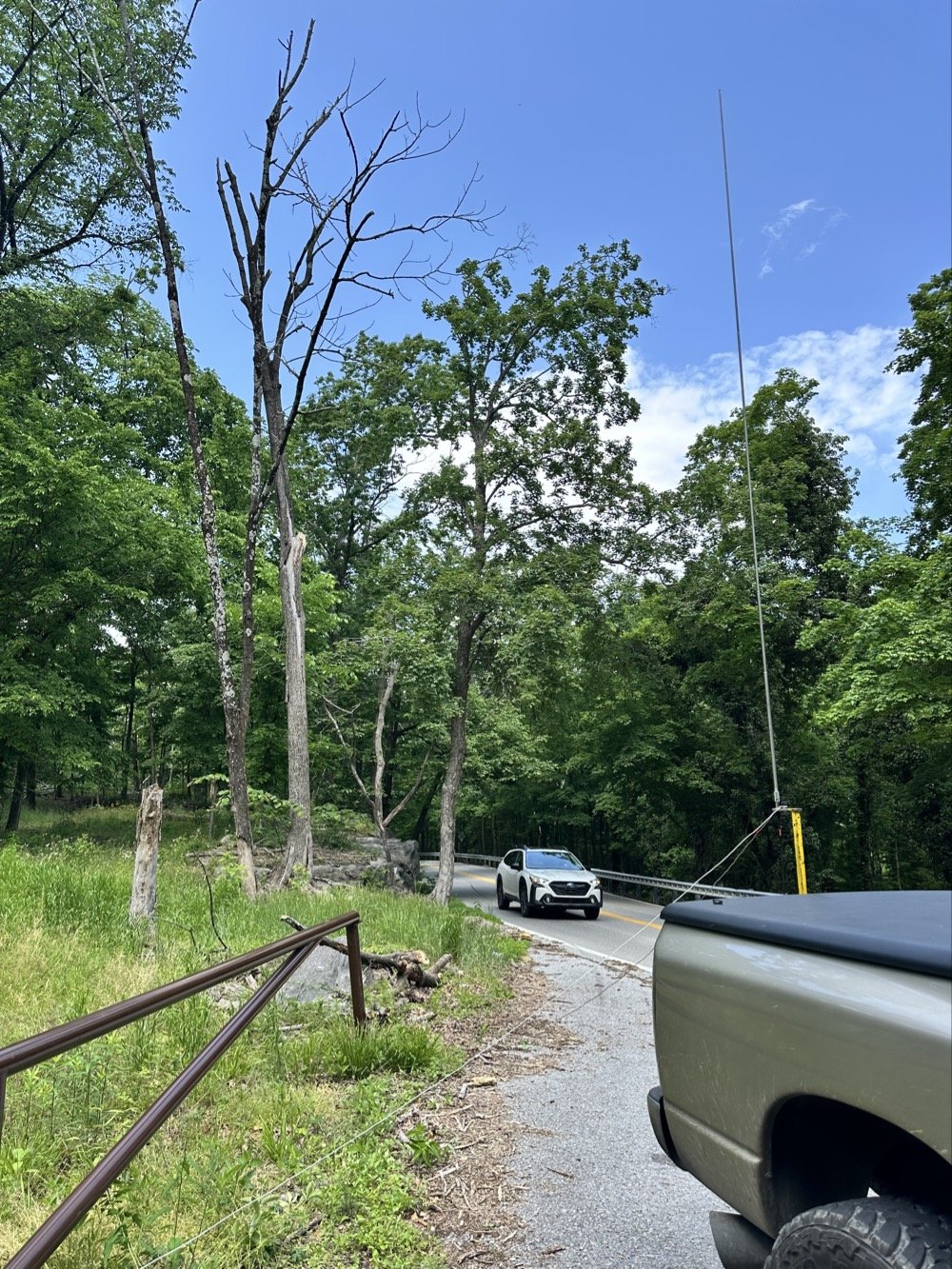I used the telescoping 213” vertical antenna from Wolf River Coils. This antenna is pretty easy to tune since you simply telescope it in and out until it matches your frequency of use. I use the nano-VNA to measure the band pass and the SWR plot for simplicity. The nano-VNA really is a wonderful and very powerful antenna measuring tool once you learn how to use it for such things.