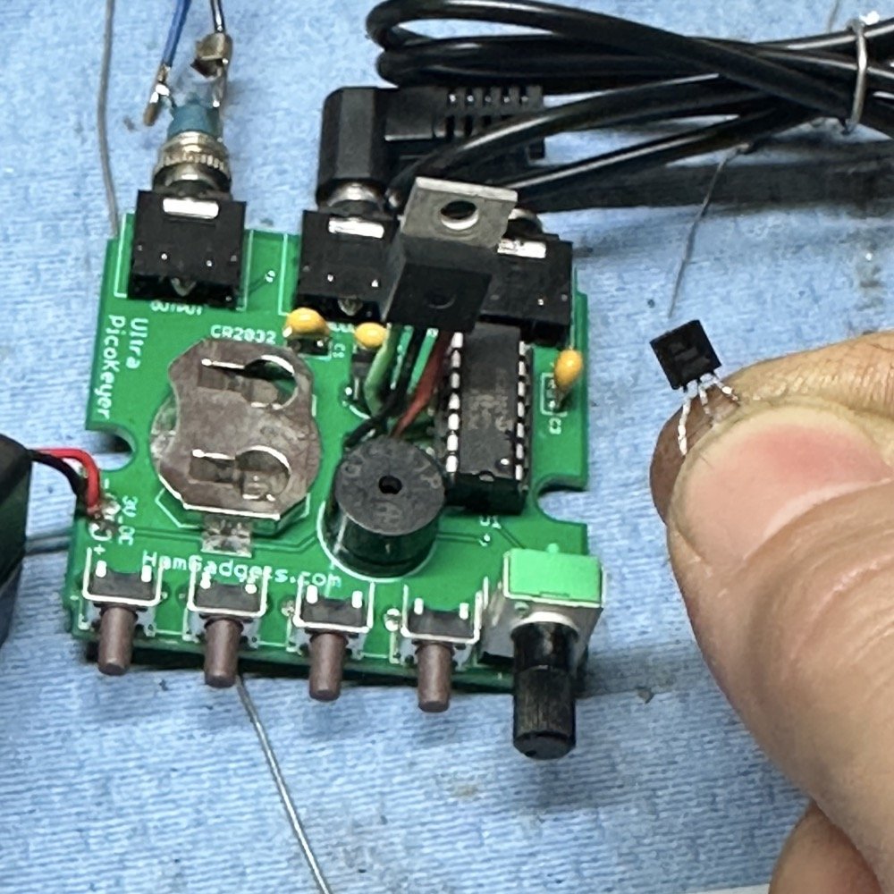 One of those tiny TO-92 package mosfets is dead and wont key the transmitter anymore…so I used a spare keyer I had and programmed it for the code string and tested it with a different radio.